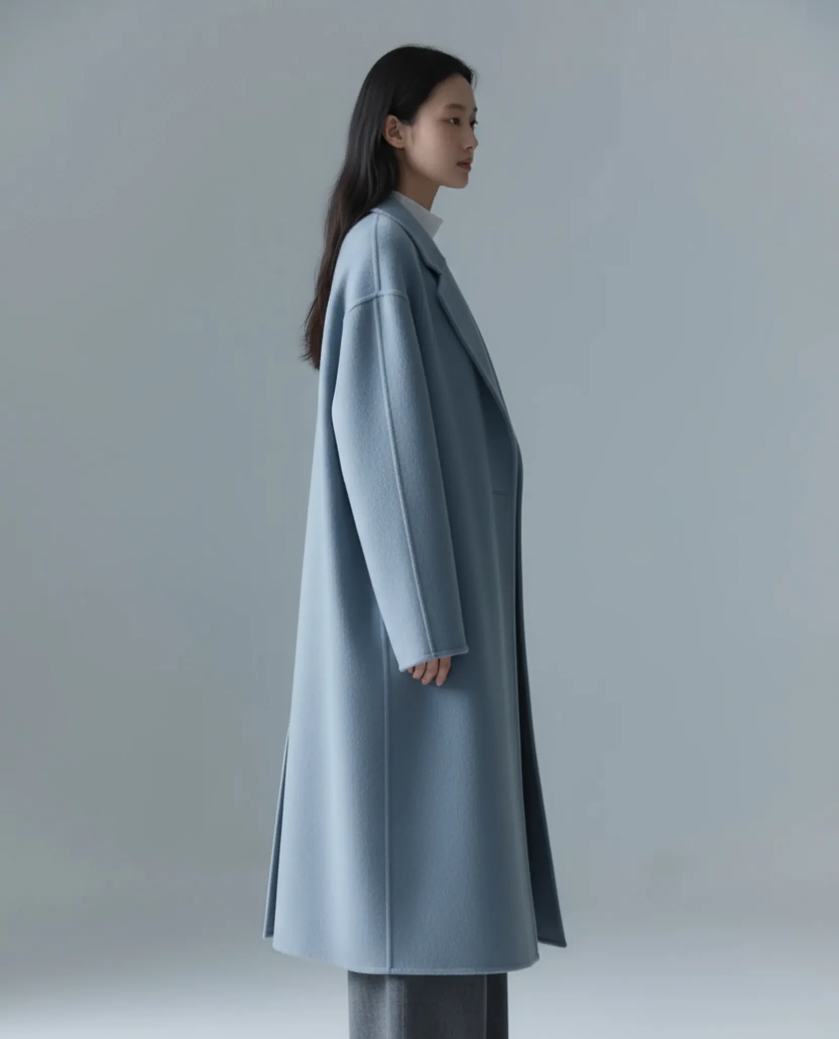 This ensemble represents a fusion of structure and fluidity. The pristine white dress, with its clean lines, is beautifully contrasted by the overcoat's gentle cascade, creating a look that is both powerful and graceful, ideal for making a memorable impression.